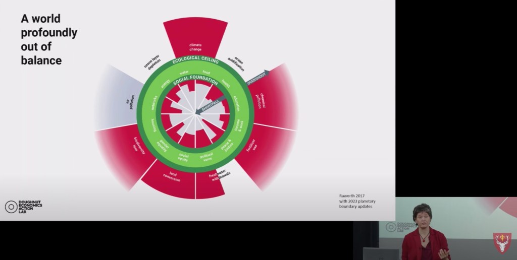 You and I have been living within one particular work of fiction for most of our lives and it emphasises the role of markets, the ālawsā of supply and demand that govern prices and the pursuit of gross domestic product (GDP) as an over-arching goal for national economies. Now, however, we need a new ‘fiction’ if we are to live within the Doughnut – a symbol Kate has developed to depict the problems of inequality and inequitable access to resources on the one hand, and the various forms ecological ‘overshoot’ on the other. To hear this from a professional economist was a moment of revelation!