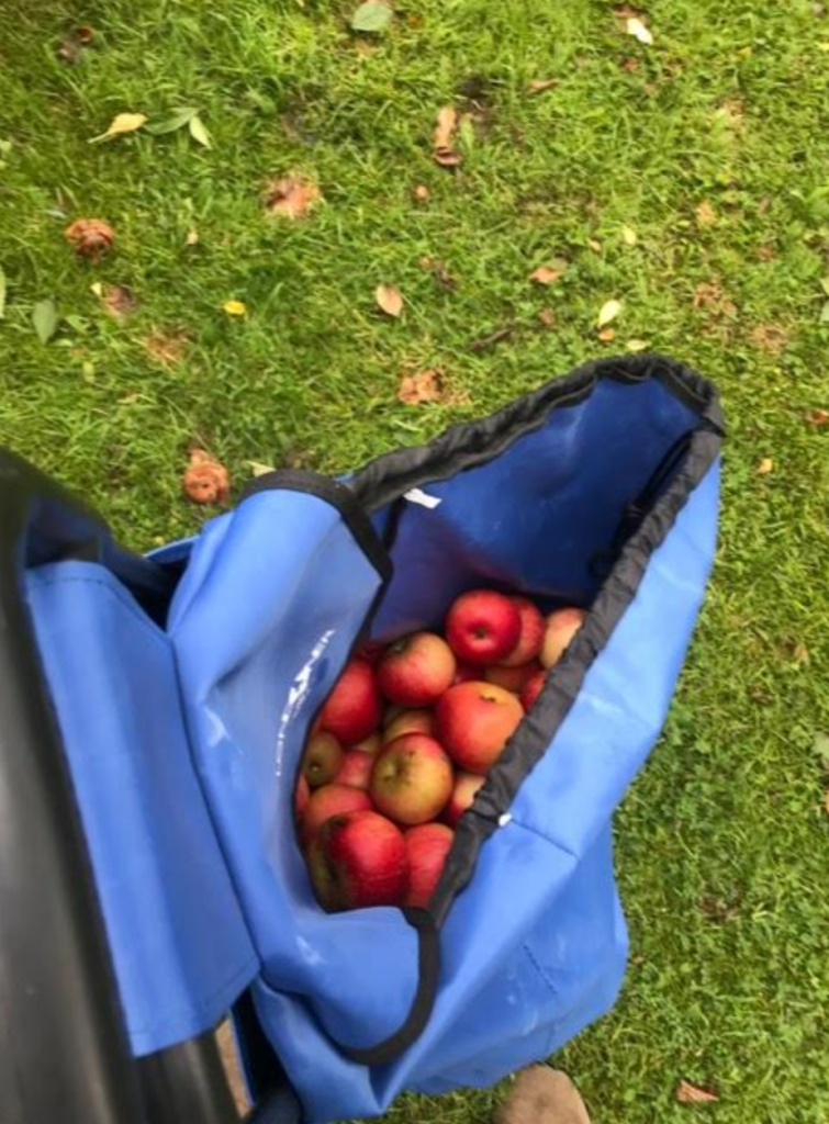 So, although I was busy this morning, I went out with a trolley and started to pick the apples.