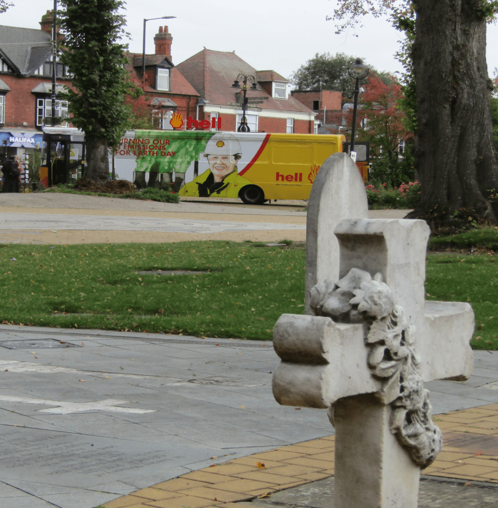 vicar was reported to have liked very much. The bus depicted conditions that would arise on our planet – Earth – if Oil Companies are allowed to continue to extract Fossil Fuels.