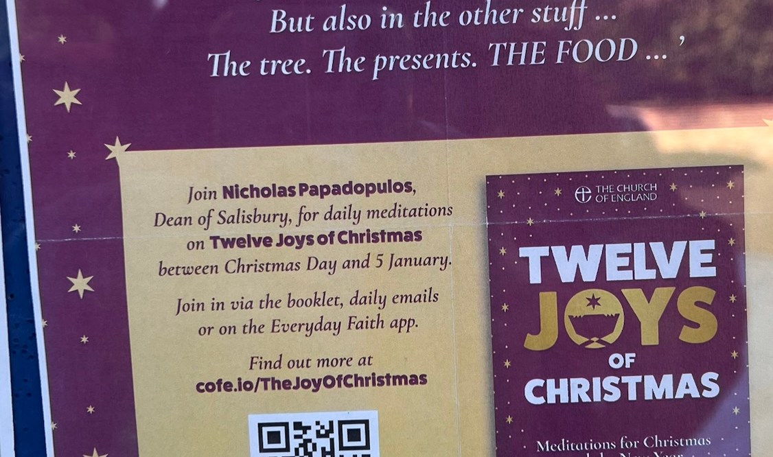 There’s still time (just about!) for Joy in Enough readers to enjoy the ‘twelve joys of Christmas’ reflections with Nicholas Papadopulos, Dean of Salisbury, on the Everyday Faith App from the Church of England.